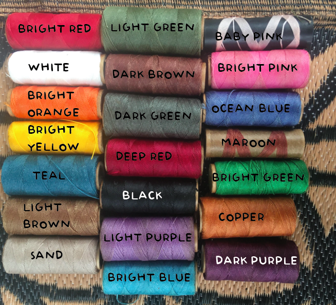 In your message please include your choice of 3 colours of wax cotton in notes at check out or email to: dustyfootprints@yahoo.com
